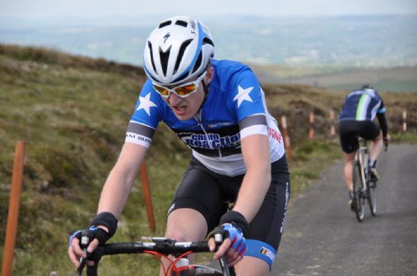 Matthew said "I sat in the bunch for three laps of the Crilly race as I knew nothing would happen to the climb through Dundrod and Hannahstown. The pace on the climb was fast and by the top, nearing Divis, I was in a group of five, with the bunch scattered all along the road behind us. Unfortunately Banbridge had two riders in the break and they played a tactical game to finish first and second. I was then battling it out for third place at the top of Divis but managed fifth.