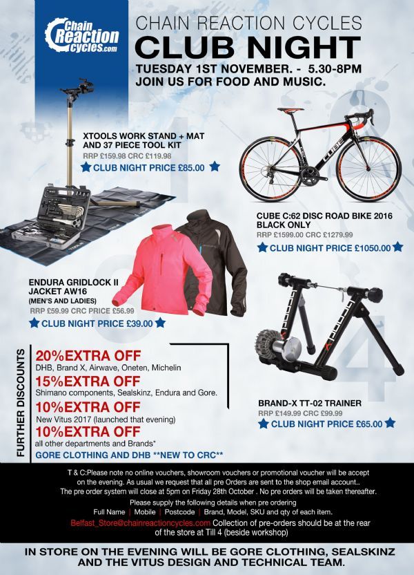 On the Night our Vitus team will be on hand to talk you through the NEW Vitus 2017 bikes, plus we have Sealskinz and Gore clothing on hand to advise you of the perfect product for your cycling needs.