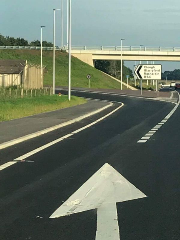 Following completion of the course competitors will turn right and travel across the fly over towards Glaryford. Competitors will take the first road on the left, at hump back bridge onto the Kildowney Road. This will lead back to sign on, approximately 1 mile. Road also marked. This is to maintain the safety of competitors as it removes the need to pass across the dual carriageway.