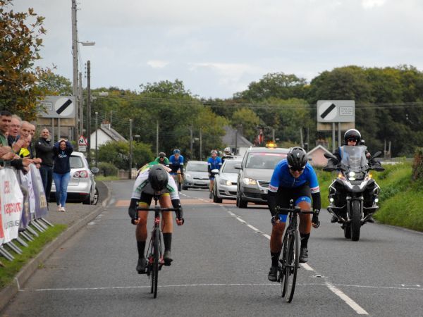 In the Ladies Race, an early break by Katharine Smyth (BRC), Aine Donegan (Scott Orwell) and Eileen Burns (BRC) stayed away for the day. Burns lost contact with the other two on the climb up Glencloy, whilst the other two fought out the sprint, with Smyth taking the win.
