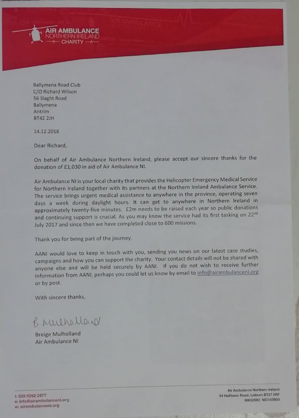 Many Thanks from the NI Air Ambulance Charity!